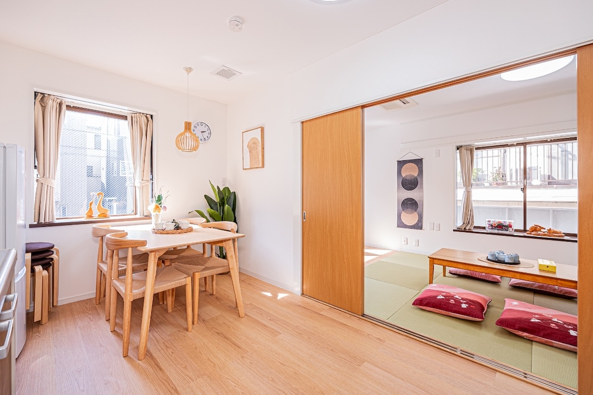 【7点入住 / 19点退房】池袋王子赤羽站免费接送丨上野14分钟丨2卧1厨1卫浴丨可住12人丨B