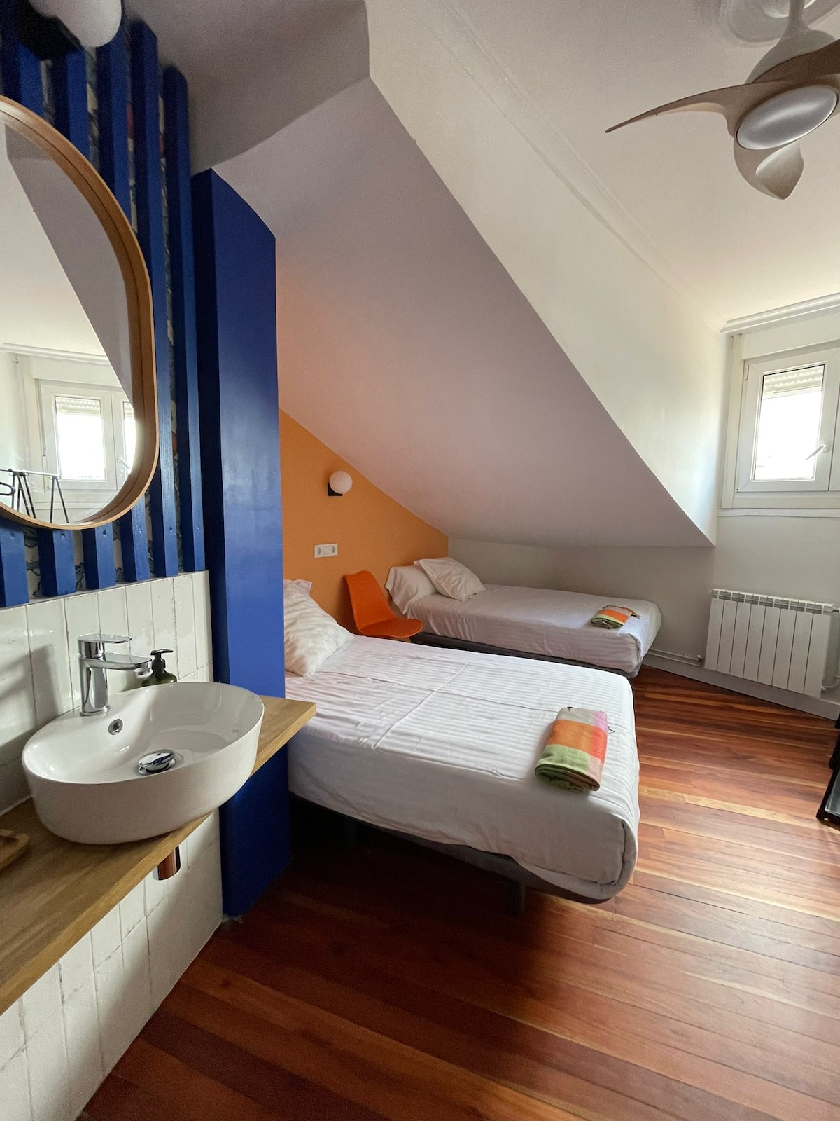Santander, en una ubicación privilegiada que permite a nuestros huéspedes disfrutar de la ciudad a pie Acogedora y bien equipada, esta habitación combina simplicidad y buen gusto en un espacio reducido. SE ENCUENTRA EN UNA 4 PLANTA SIN ASCENSOR. BAÑO COMPARTIDO. 2 Camas de 1.05