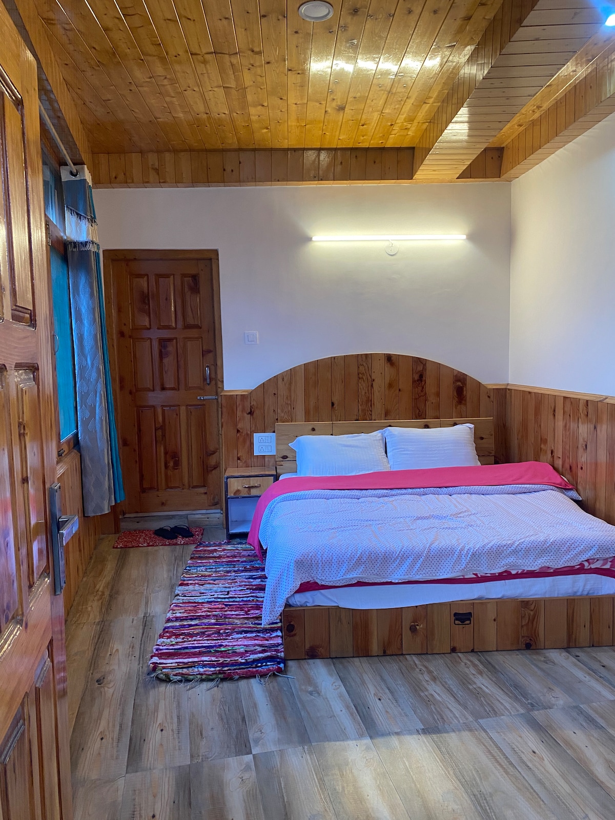 Namaste from mountains, Our Wellbeing farm stay is 4 rooms and 2 family suites premium stay in Kasol, where life slows down. Our rooms are made of mud and pine, giving you the comfort of luxury with the warmth of nature. Step outside and you’ll find yourself surrounded by our organic farms, where the food you eat is grown with care. A stay with us isn’t just about comfort — it’s about feeling at home in nature, eating fresh, and finding the peace you’ve been looking for.