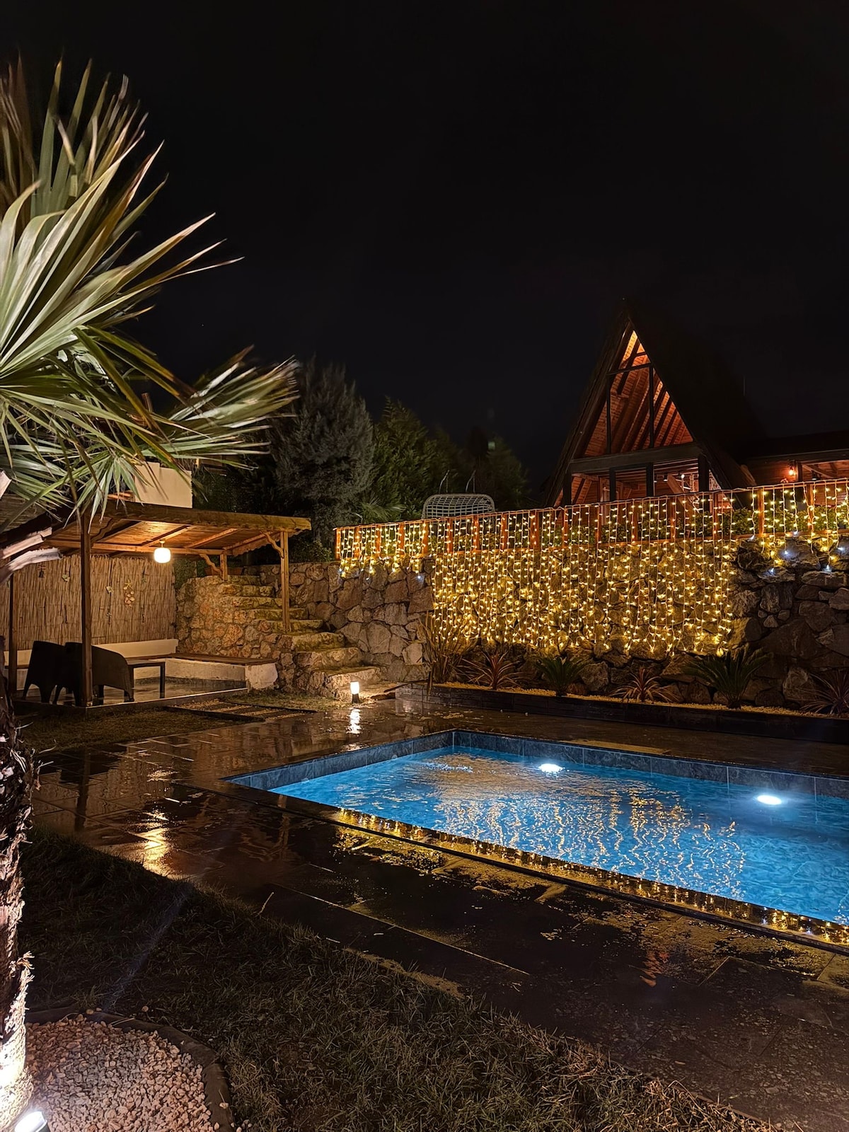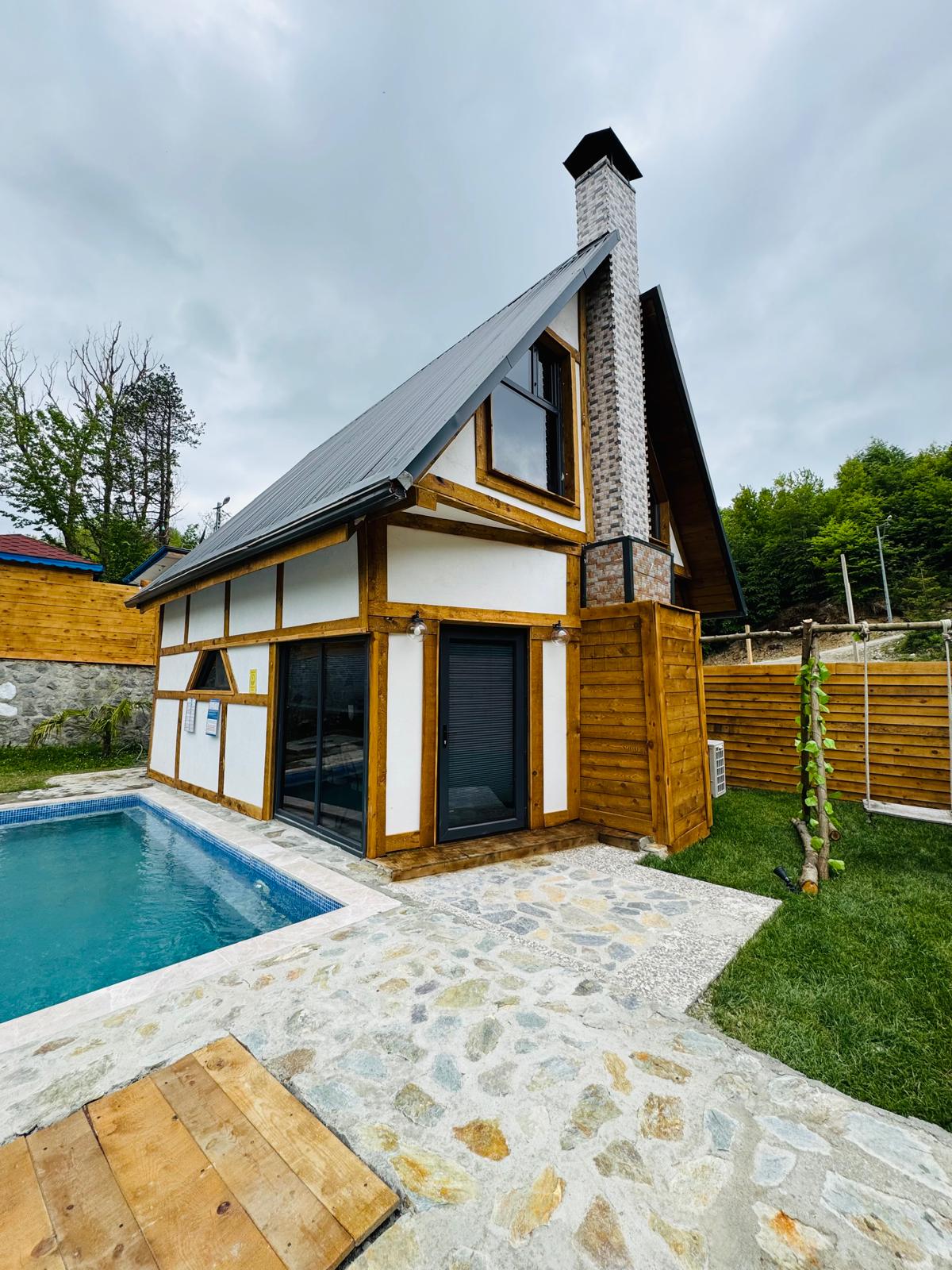 Take it easy at this unique getaway Loca Sapanca Bungalov 6, with a Tropikal themed interior and spacious front & back garden. At LOCA SAPANCA BUNGALOW every house has; a private outdoor pool, indoor Jacuzzi, stone Chimney and loft floor bed. TV unit Air conditioner mini bar Our Bungalows have front and Back terraces. On the front terrace you will find a nice garden with Barbeque area and on the back terrace you can enjoy your privacy with a private pool and sun bathing terrace.