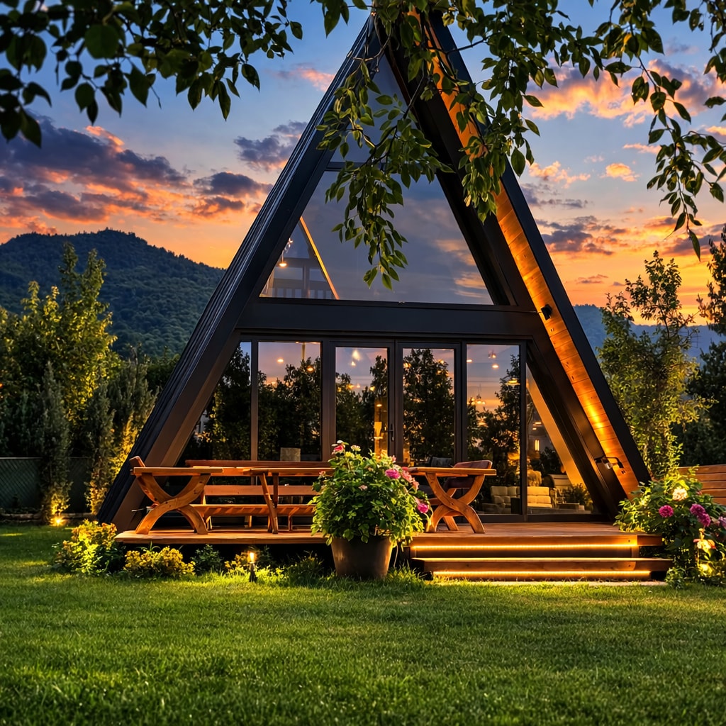 带户外座椅的袖珍小屋
