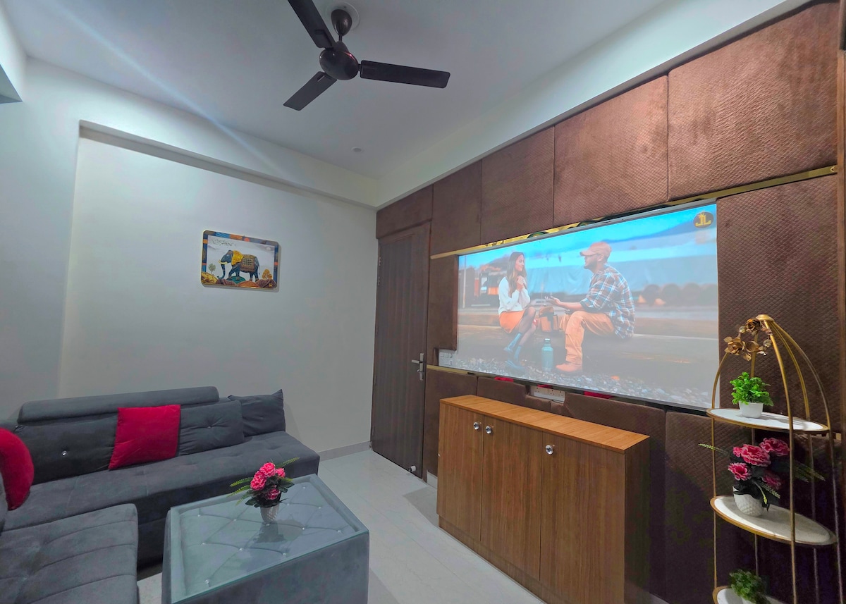 Welcome to our amazing suite which is situated on 15th floor of a high rise building. This 2bhk is completely fresh apartment. Wide private patio with city skyline view makes it unique in class. The place is perfect for relaxing and enjoying scenic view of modern architecture. Apartment is loaded with 3 smart tvs (all applications works), 2 cozy double bed, 2 big wardrobe with locker, 6 seater sofa, stylish coffee table,iron board, fridge,microwave,induction,electric kettle, toaster & much more