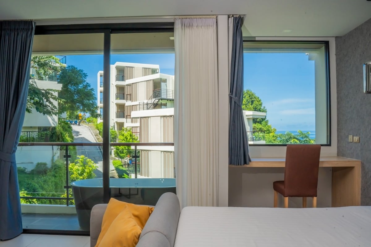 On a hill near beautiful Nai Harn beach, surrounded by mountains to the north and the sea to the east, this large 140 sqm apartment including two terraces and private infinity pool is located in a quiet area. With tropical surrounding and small sea view with the Phi Phi Islands in the distance. With great views and a cool breeze, this luxury apartment comes with lush garden and amazing sunrises. You find the apartment on the ground floor of our Treetop Villa with its own private entrance.