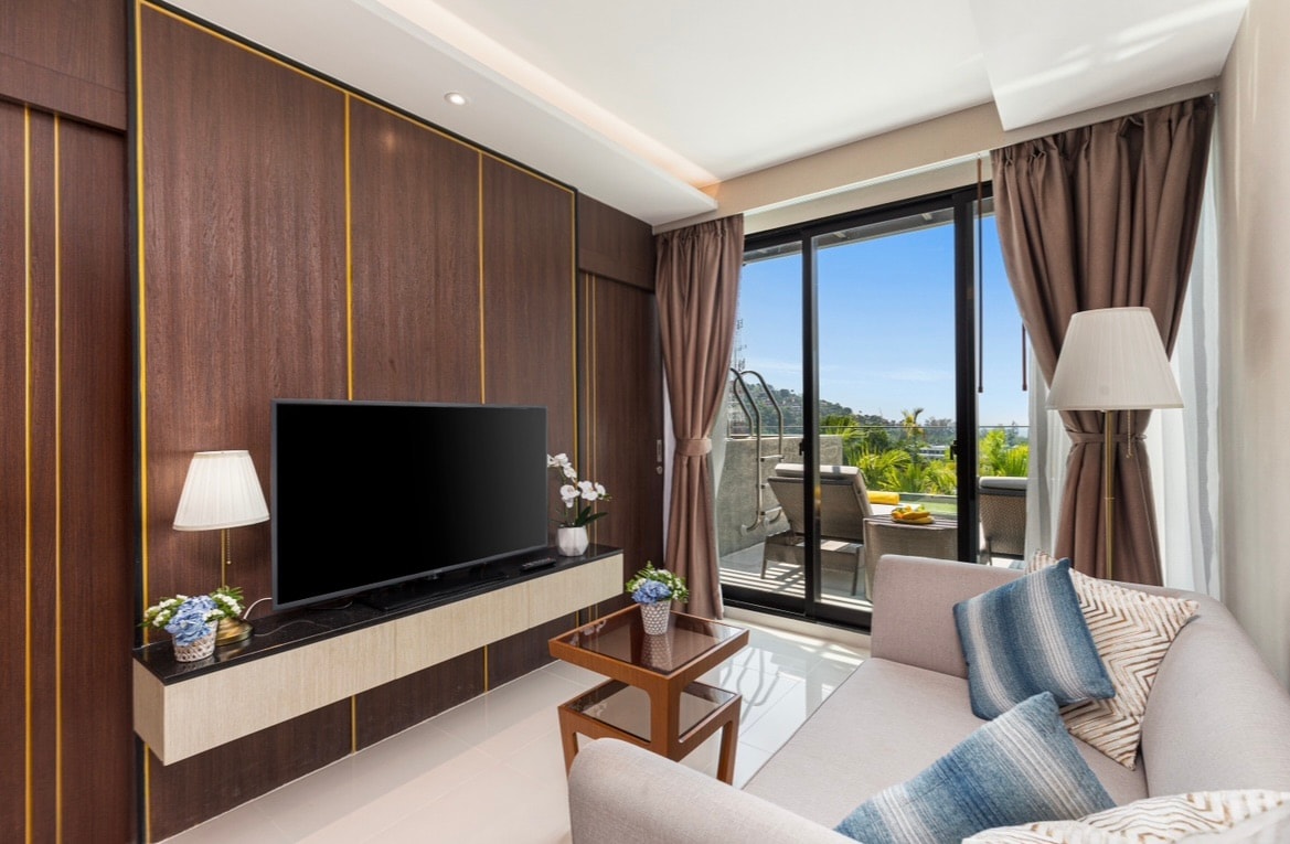 Kick back and relax in this calm, stylish space designed for comfort and luxury. This modern and contemporary condo features a spacious layout with elegant interiors, perfect for a tropical escape. Surrounded by lush greenery, the residence offers a tranquil atmosphere paired with premium services and 5-star facilities—all just a short walk from the stunning Bangtao Beach.