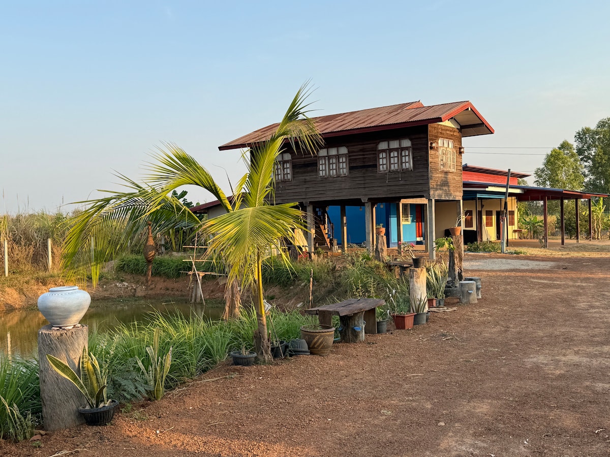 เติมพลังกายและใจในที่พักเงียบสงบและมีสไตล์ Cozy Garden Home in Peaceful Kalasin Welcome to your serene peaceful escape in Kham Muang, Kalasin Thailand! This Charming two story garden home is nestled in a quiet charming area. Perfect for anyone seeking tranquility and a connection to nature. Bicycles are available for guests upon request, subject to availability — perfect for exploring the area.