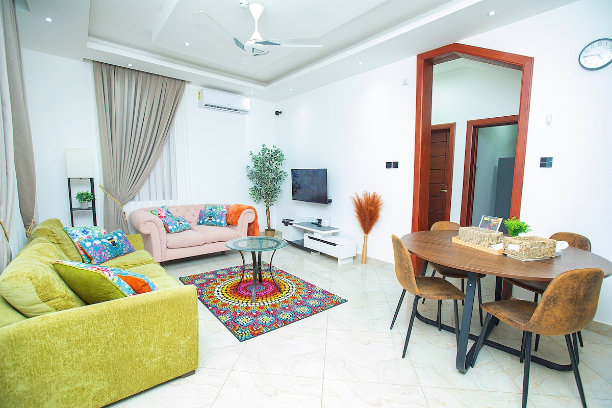 Superhost Reggie’s Home Includes: 🛫 FREE Airport Pickup & Drop-off 🚗 FREE Car & Driver (fuel on you; extra fees for trips outside Accra) 🍳 FREE Cook (groceries not included) 🥞 FREE Breakfast (tea, coffee, pancakes, eggs, waffles, oats, porridge) 🕛 FREE Late Checkout 🏡 Gated Community, 24/7 Security 🛌 2 Bedrooms, 1.5 Baths, Fully Air-Conditioned 📶 FREE Starlink WiFi, Netflix, IPTV 🔌 Universal Electrical Sockets 🏋️ Gym & Pool (extra fee) Perfect for a worry-free stay in Accra
