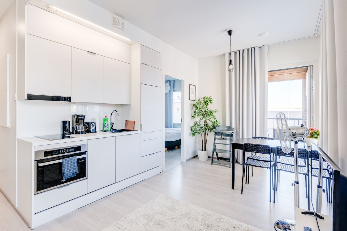 靠近港口的现代两室公寓+免费停车!