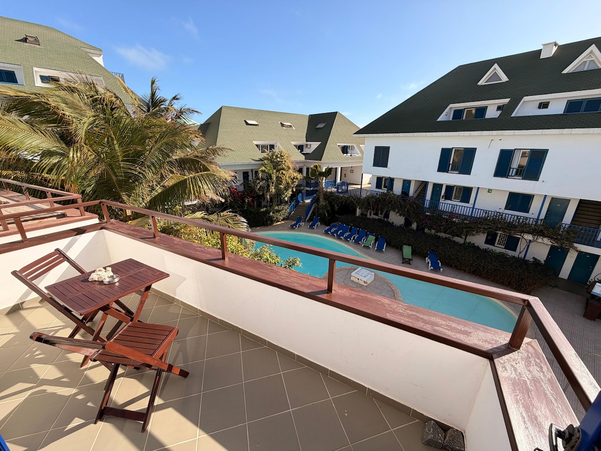 Feel welcome to come and enjoy the endless summer in my penthouse in the heart of Santa Maria. 7 seconds to beach, 1 min to center, top breakfast place in Sal (Capefruit) next-door. Happy to help making your holiday memorable Place2be for outgoing (kite)surfers, lovebirds, friends... Private bedroom with bathroom and Shared rooftop area! (Only if other room is rented). New double bed that can split into 2 singles. Hope to meet you soon! Robert