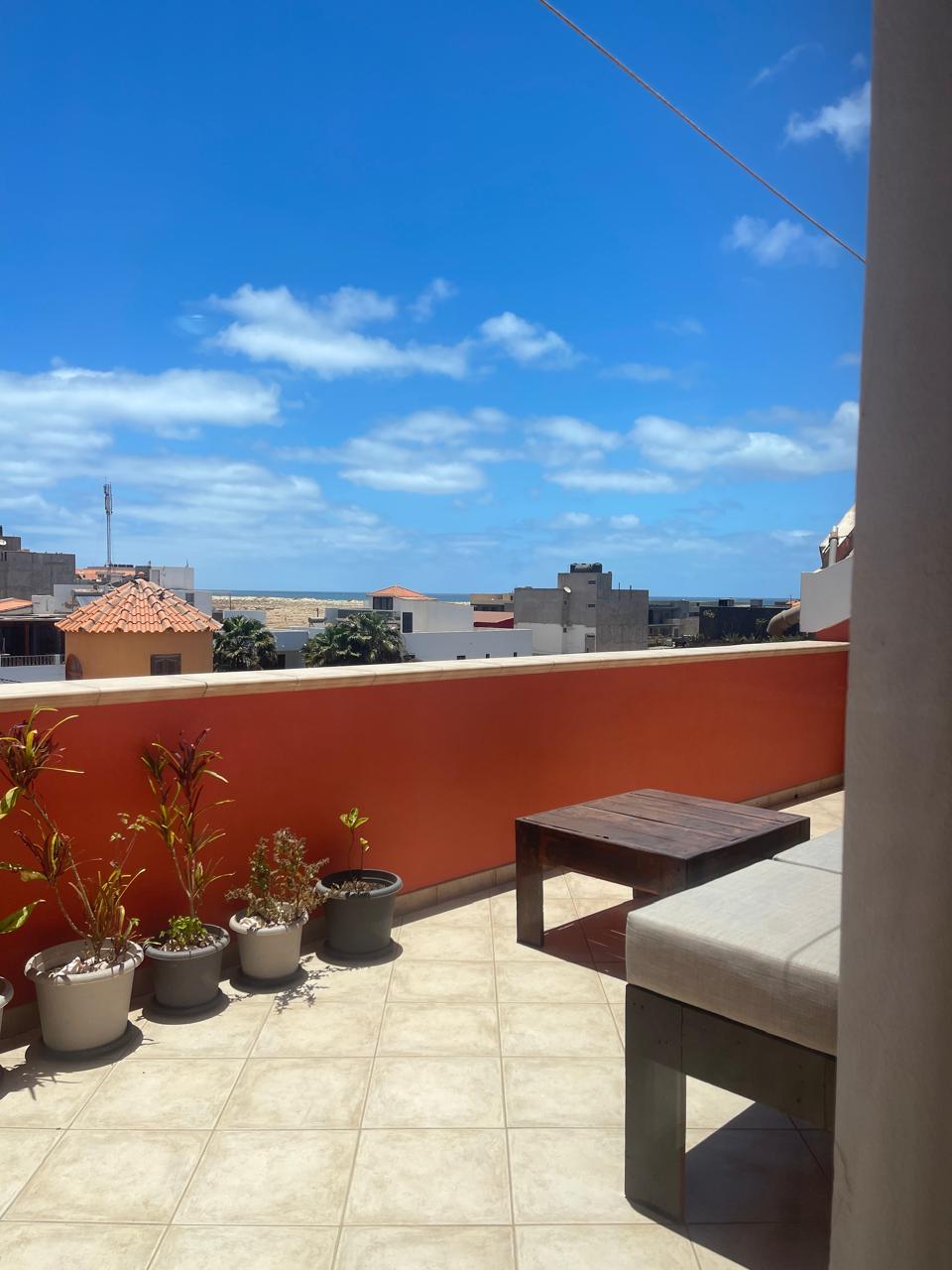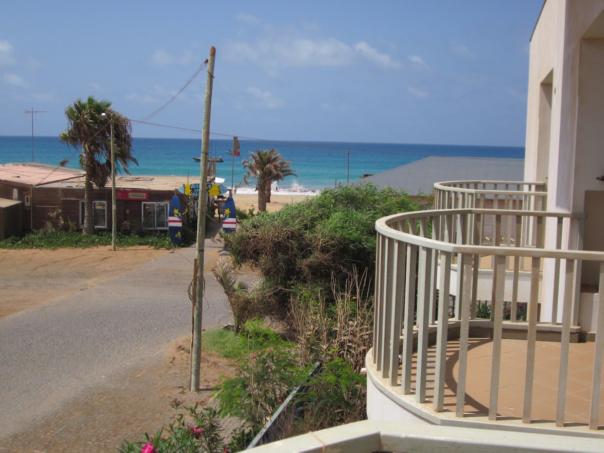Feel welcome to come and enjoy the endless summer in my penthouse in the heart of Santa Maria. 7 seconds to beach, 1 min to center, top breakfast place in Sal (Capefruit) next-door. Happy to help making your holiday memorable Place2be for outgoing (kite)surfers, lovebirds, friends... Private bedroom with bathroom and Shared rooftop area! (Only if other room is rented). New double bed that can split into 2 singles. Hope to meet you soon! Robert