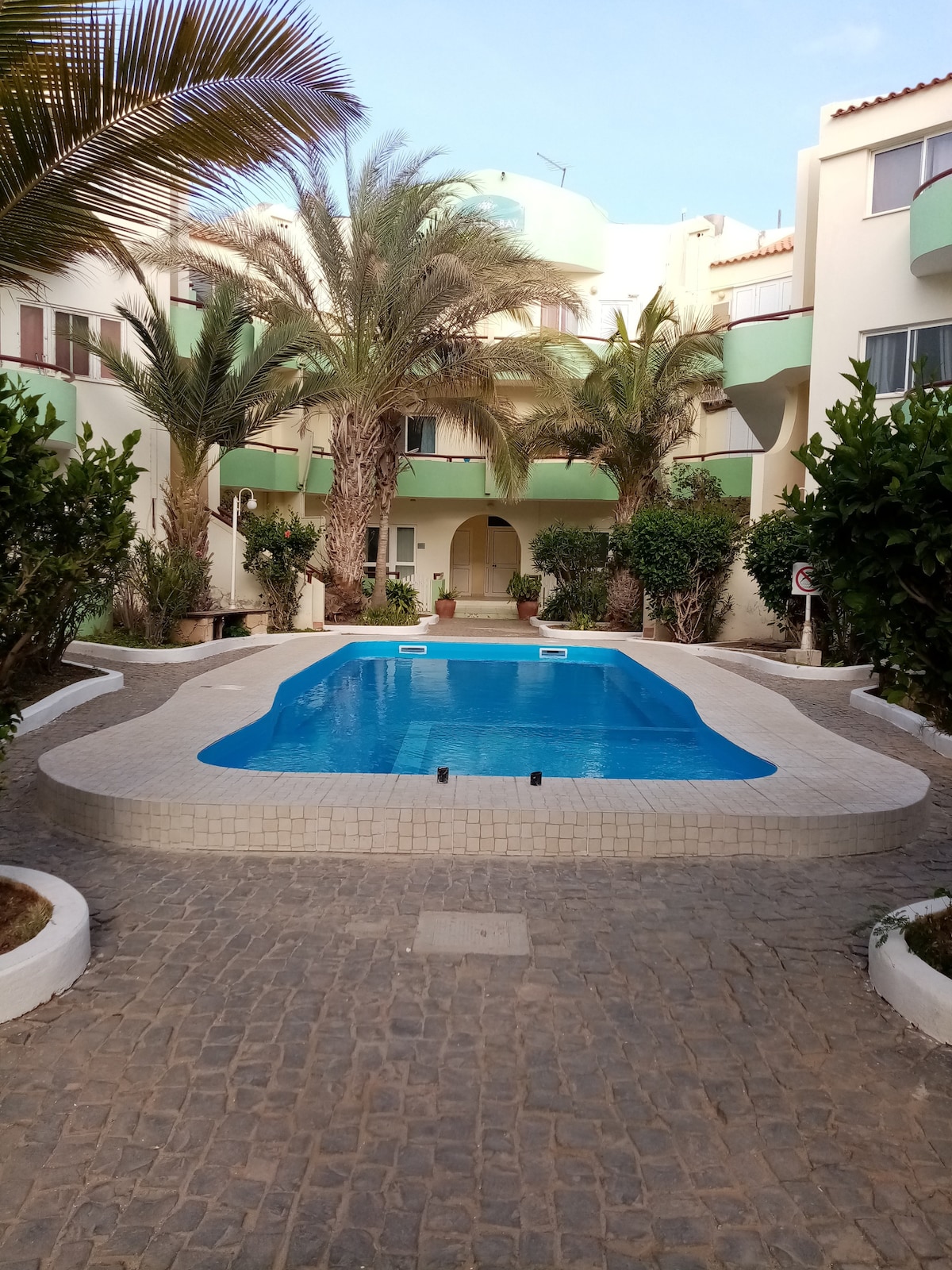 Bem-vindos a NAGOIA's place, um apartamento de dois quartos num charmoso e calmo condomínio com piscina, a apenas 100m da praia de Santa Maria. Na varanda poderá desfrutar de refeições e luares com vista para a piscina. O condomínio tem segurança 24/7, um restaurante - Valéria e mini-mercado em frente. O centro da Vila situa-se a apenas 7 minutos a pé. Nagoia's Place é a solução ideal para estadias longas.