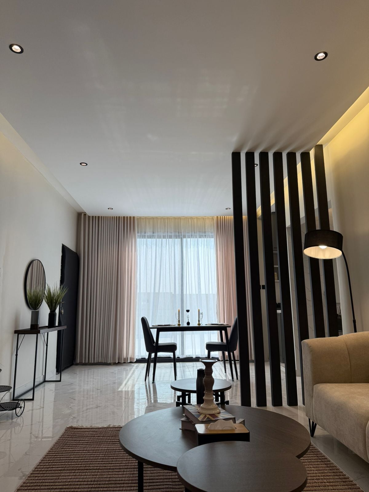 A luxury apartment next to Riyadh Season Boulevard, Hometel Residence building With a private external entrance and self-entry, consists -A living area with a billiard table, aesthetic natural plantings, a smart TV screen, a dining hall, a kitchen, and a guest bathroom, Outdoor session -kitchen (oven/ refrigerator/ microwave/ coffee maker/ kettle/ washing machine/ kitchen tools) -Master room with separate bathroom -Two bedrooms single beds, with a shared bathroom -Boulevard is just 5-minute walk