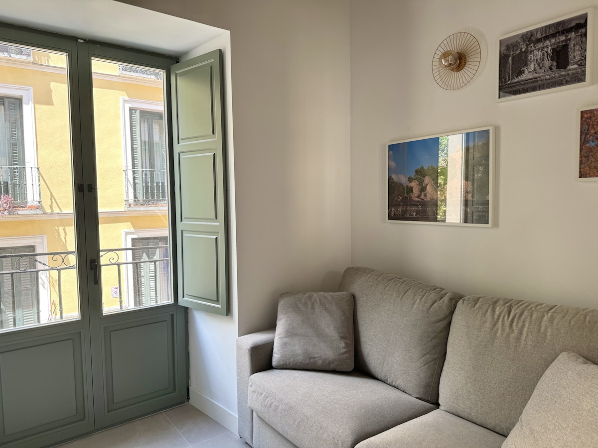 Enjoy the amazing location of this luxurious refurbished 1 bedroom, 1 sofa-bed flat (70m²) in the heart of Madrid, MALASAÑA! An area that offers a multitude of restaurants, leisure and culture, as well as easy and quick mobility throughout the city. The flat offers the highest quality, comfort and design for your stay. Everything is included: water heater, A/C, heating (heat accumulators), WIFI, sheets, towels and everything you need, whether for work or for fun!