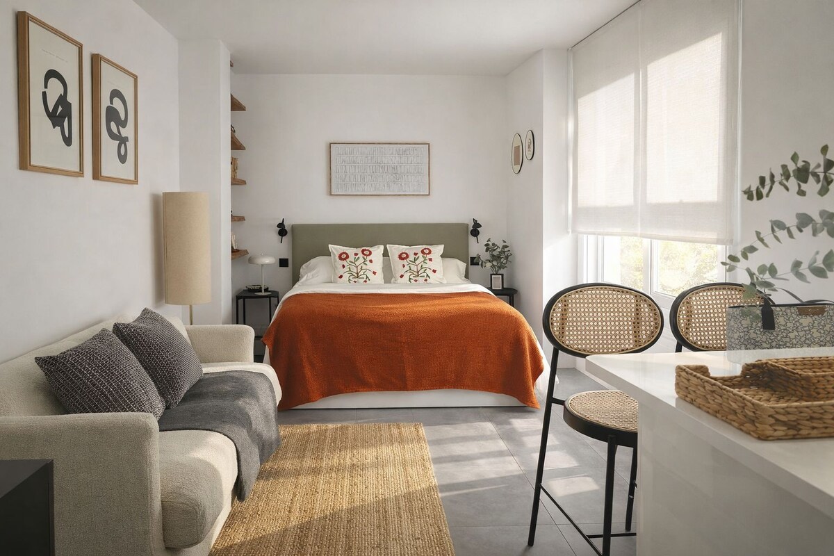 Alquiler de temporada, ideal para que nuestros inquilinos disfruten de estancias largas y cortas. EXCLUSIVO piso a 50m del parque del RETIRO y en el barrio más cool de tapas, IBIZA. El piso consta de salón con una moderna y acogedora chimenea, cocina totalmente equipada abierta al salón. Un bonito dormitorio principal con su baño en suite y un pequeño pero muy coqueto segundo dormitorio con su baño propio. Todas las estancias con ventanas y mucha Luz. REFORMADO INTEGRAMENTE.