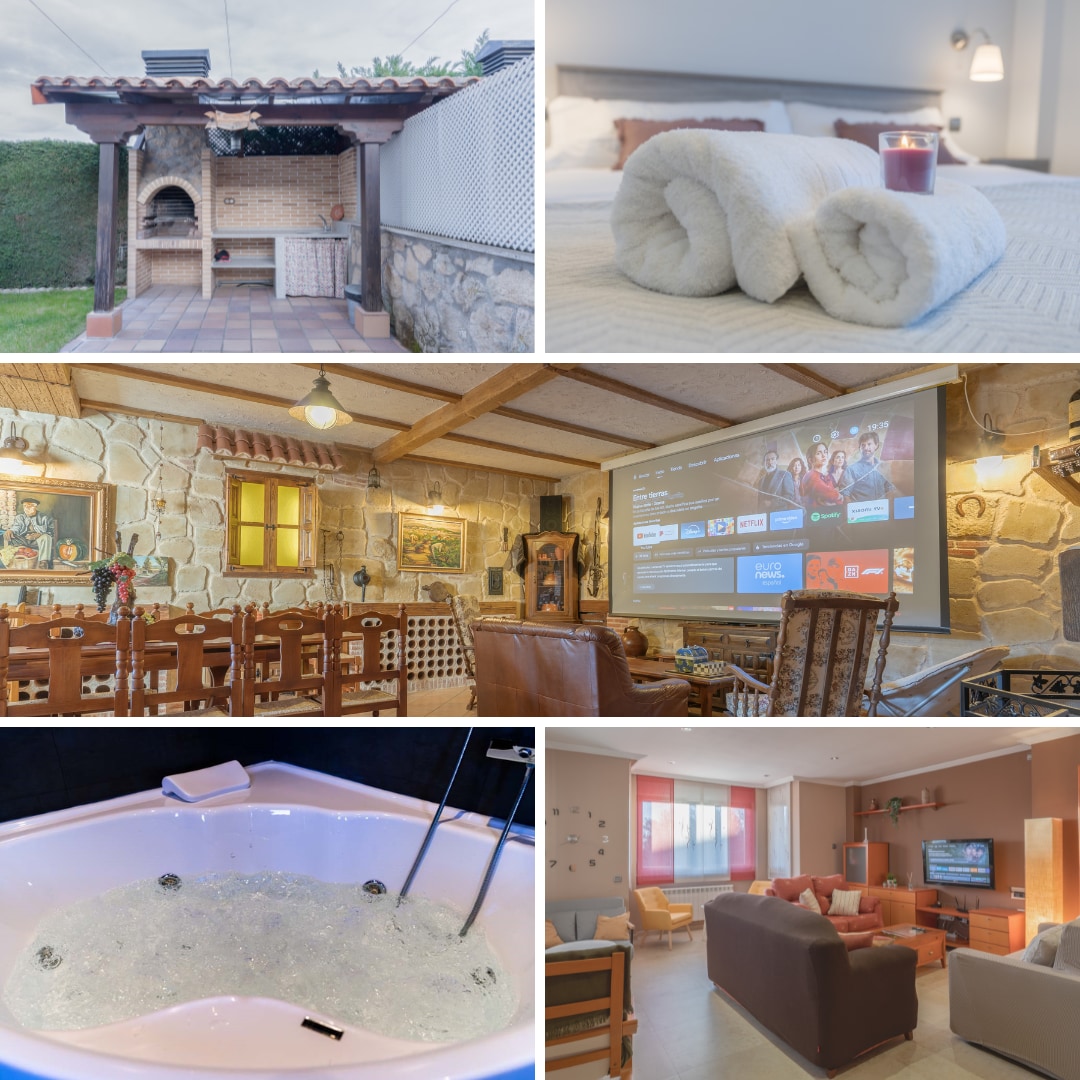 Es un apartamento con jacuzzi , wifi , recién reformado con chimenea de pellets y aire acondicionado en las principales estancias,cocina comedor con mini horno , cafetera de cápsulas dolcegusto, cafetera italiana, tostadora..El porche cuenta con césped artificial y barbacoa de gas. No sé puede fumar y las mascotas están sujetas a condiciones de 10 kilos máximo, una mascota máximo y 25 euros por mascota y Tiene piscina de temporada compartida con otro alojamiento.