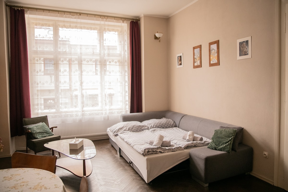 Stylish cozy apartment with unique atmosphere located near to the historical centre (10 min.) or botanical garden (3 min.). There is a beautiful view on the town´s landmark - Calvary. Great for couples, solo or business travelers.