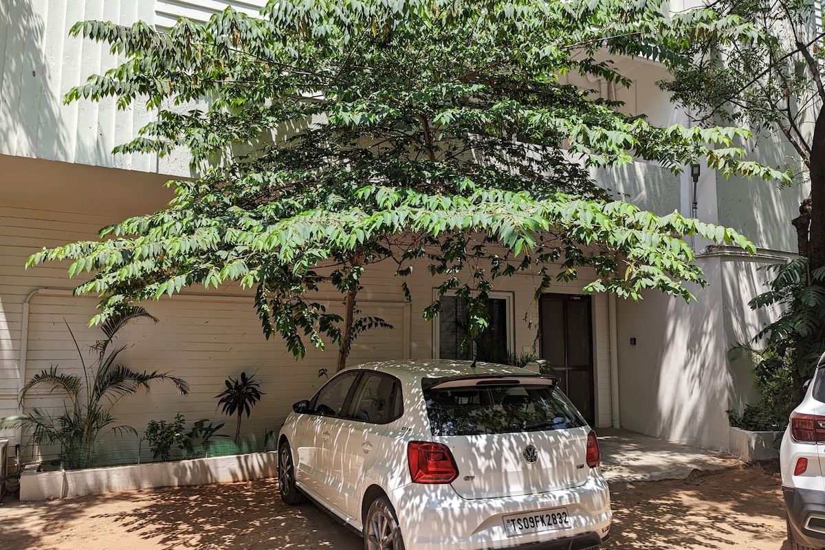 Welcome to Cinnamon House! Our modern 3-bedroom condo is fully-furnished and completely equipped to accommodate friends, family, and couples. We've put in a lot of thought – and plenty of colour – to set up the living room, kitchen, bedrooms, and bathrooms in a way that would offer you a comfortable, peaceful visit. We're located in the heart of Hyderabad, in a serene locality and can be easily reached by taxi and metro. We hope you have a pleasant stay and look forward to hosting you!