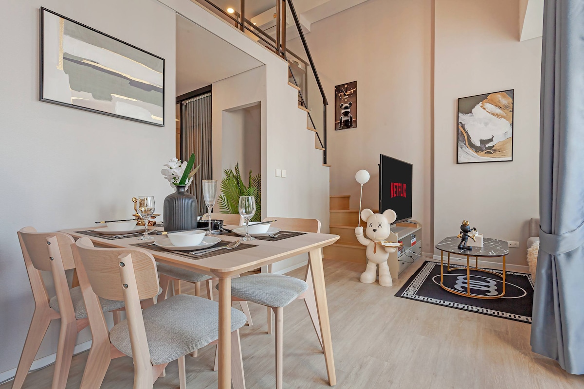 曼谷市中心轻奢公寓/10分钟到轻轨站/贵妇商圈/购物天堂/舒适一房一厅套房/巴士东站