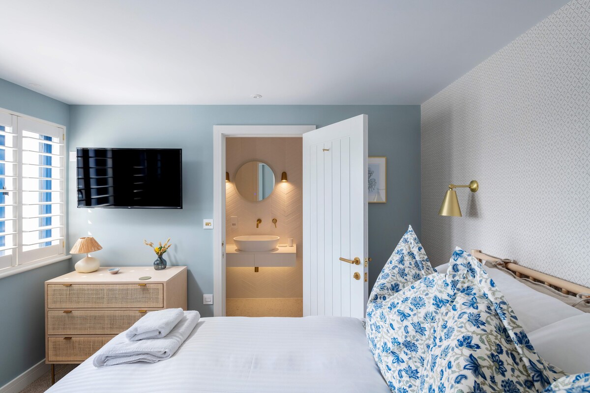 The Main House is a beautifully renovated three-bedroom home with generous space and high-end finishes throughout. Outside, enjoy a large private garden with cedar hot tub (extra charge, payable to host) and a fully equipped outdoor kitchen, ideal for relaxing or entertaining. Set on the water’s edge with stunning estuary views, and just a 10-minute walk to Salcombe town centre. Off-street parking for one large and one small car, plus a permit for Batson Creek car park.