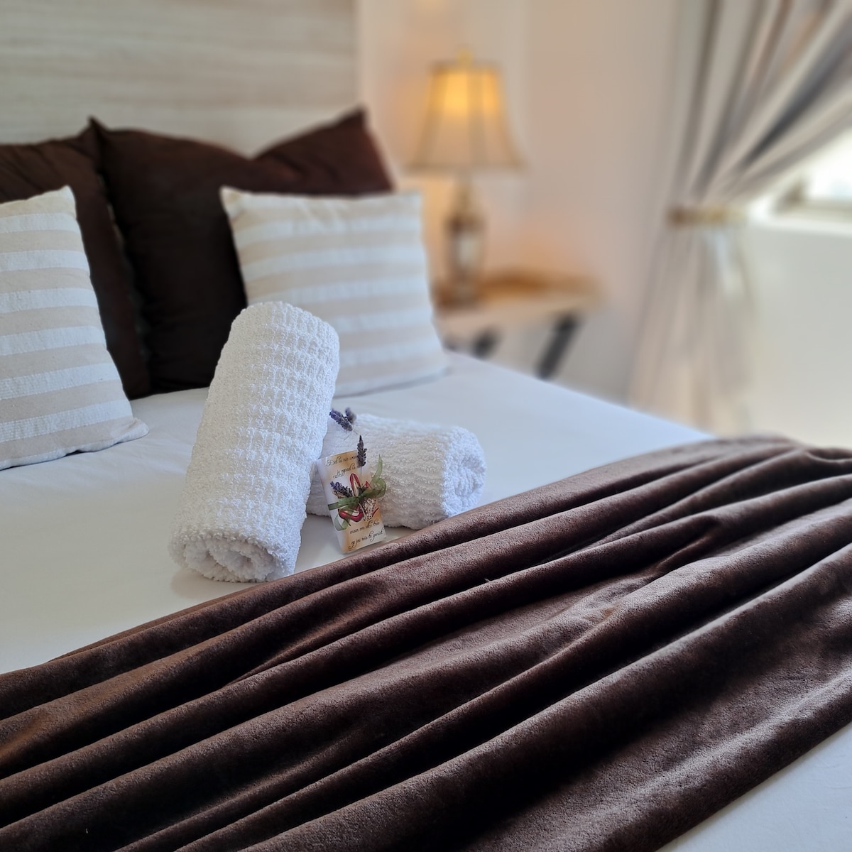 Our apartments are sanitized between every guest departure and arrival by me personally. With its white washed walls, blue finishes and seconds from the endless stretches of white sandy beaches with azure waters, mysterious sunrises, and vivid sunsets . This apartment sleeps a couple Beautiful upstairs Bachelor's unit with Limited Sea Views , queen bed, kitchenette, en-suite bathroom with shower and SHARED patio with outside braai/barbecue. Situated approximately 80m from the beach.