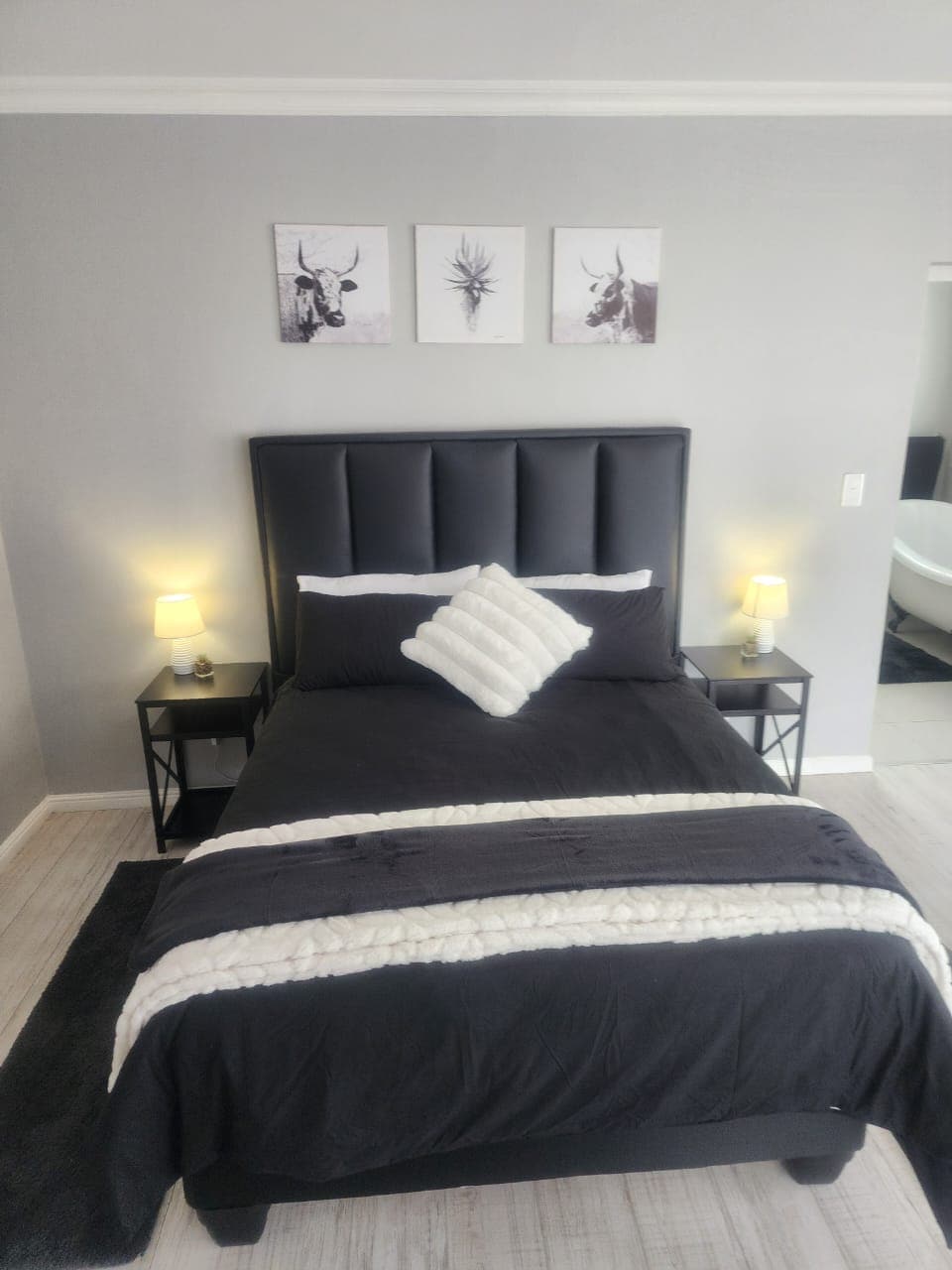 A modern style studio apartment in Langebaan near the crystal clear waters. The apartment features an open plan area with a queen size bed, kitchenette with stove, fast and free Wi-Fi and a 43inch Samsung TV with DSTV. We have built this apartment with functionality and design in mind. The result was a modern studio that provides everything you need for a relaxing and romantic beach holiday in the heart of the West Coast.