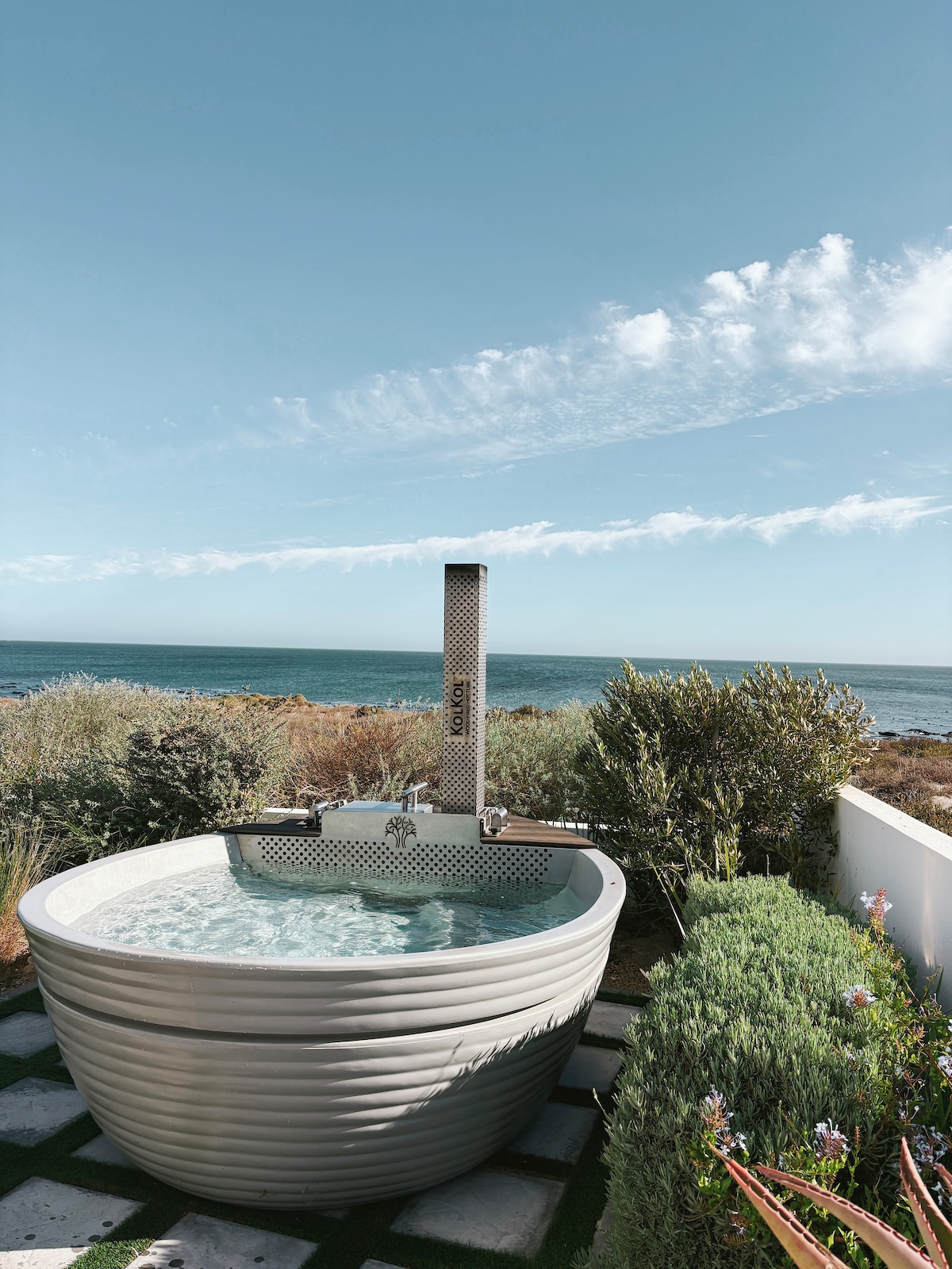 Enjoy early morning kayaking in the bay ,relax on the stoep with a good book in the afternoon. Perfect for 4 adults and 3/4 kids(2 private bedrooms) Beach is 40 meters from house. Children can swim/kayak,catch fish off the rocks. The cottage is small and cosy, its a simple place, the stoep is large but open, so nights are cool. WOOD - fired hot tub . Late check -out by arrangement 1 1/2 hrs from Cape Town A place to make memories! Lovely day trips around , or else just laze the day away