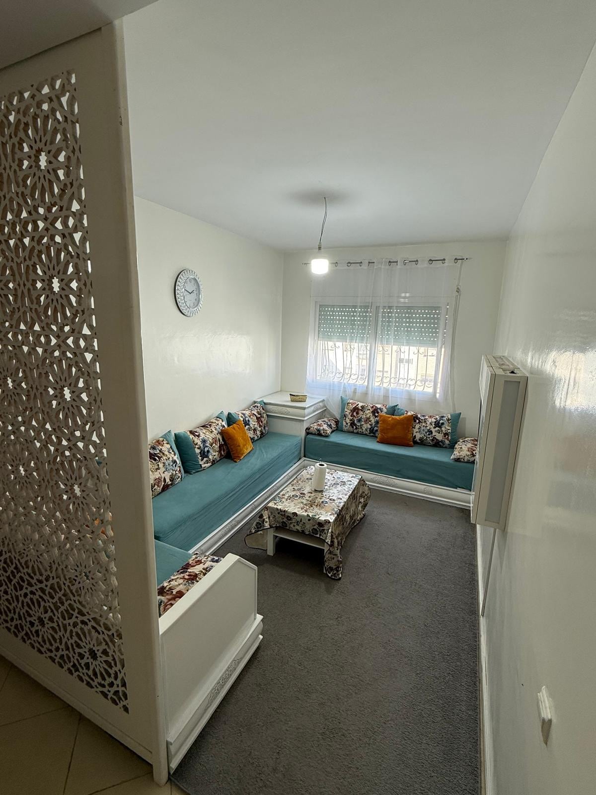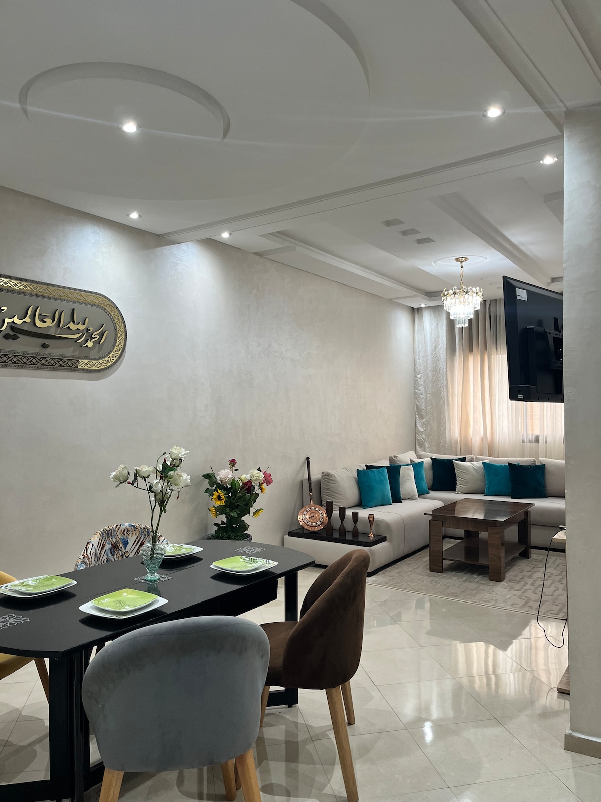 Un charmant appartement,Situé au rez-de-chaussée, pratique pour ma personne âgée. vue sur jardin, idéalement situé dans un endroit calme, à seulement 15 minutes de la ferme des loisirs, la plage, les jardins exotiques, Magic Parc, la gare ferroviaire et la tour Mohammed VI. À proximité de marina et l'aéroport de Salé. Avec son goût raffiné, propreté optimale et équipement complet, cet endroit offre un cadre confortable pour votre séjour, vous permettant de profiter de votre temps de détente.