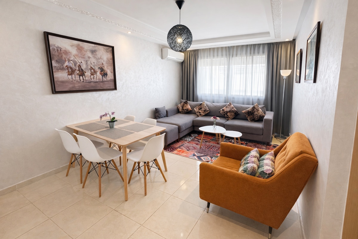 New, luxurious and relaxing 2 BR coastal apartment located in the heart of Rabat for travelers who value comfort & serenity, decorated with taste and attention to details with an astonishing seaview. Its strategic position allows you to easily walk to most city's attractions, restaurants and shops. Fully equipped APT, air conditioner in the main bedroom, High speed WIFI, Netflix, Coffee and literally the BEST Sunset VIEW in Rabat Book now, I have set all the conditions to make you feel at home!