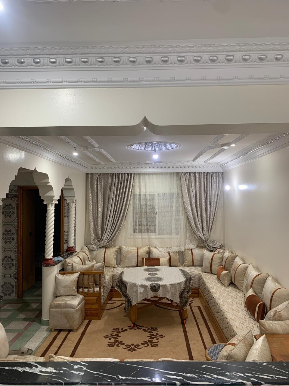 Inside Rabat's, most prestigious, Souissi neighbourhood, is a 2,800 sqf sanctuary of luxury at the prestigious Place Des Zaers compund. This elegantly retreat offers vibrant decor, spacious living areas, a fully equipped kitchen, and a serene garden to unwind. With secured underground parking, and optional cleaner and cook services on request, and just minutes from Royal Golf Dar Essalam, it promises an exceptional blend of comfort and sophistication for a truly refined city stay.