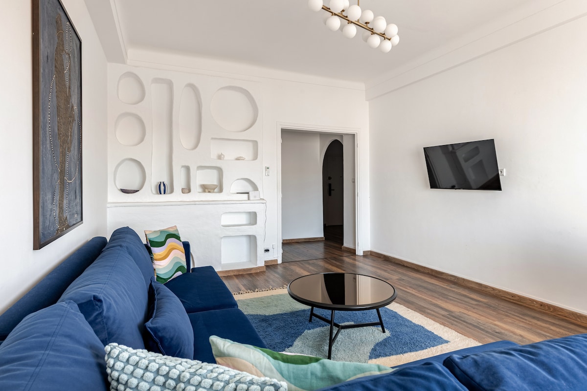 Explorez l'exclusivité à 5 min de la plage dans cet appartement lumineux de 100 m². 2 chambres, un vaste salon et une cuisine équipée, il marie confort et sophistication. Niché dans un quartier vibrant, entouré de restaurants alléchants, il propose une immersion totale. tramway à quelques pas, taxis disponibles instantanément, et une place au garage, Laissez-vous emporter par l'élégance de ce refuge, où chaque détail concourt à faire de votre séjour une expérience mémorable.