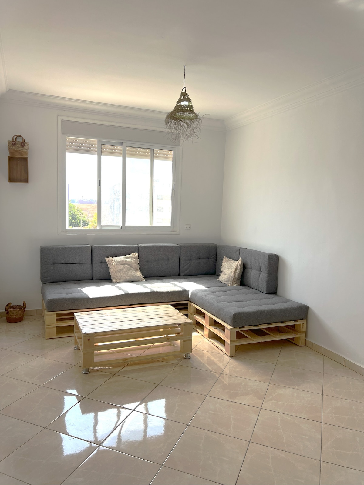 Ce logement au 4ᵉ étage avec ascenseur allie charme marocain et esprit bohème écologique. Tout le mobilier a été conçu à partir de palettes recyclées, offrant un cadre unique et responsable. Paisible et chaleureux, il est idéal pour un séjour détente en famille. À proximité des commodités et seulement à : -->9,2 km de l’aéroport Rabat-Salé -->10 km de la plage des Nations -->9 km de la Marina Bouregreg (Salé/Rabat) -->10 km de la Tour Hassan -->16 km de la Technopolis Rabat-Salé-Kénitra