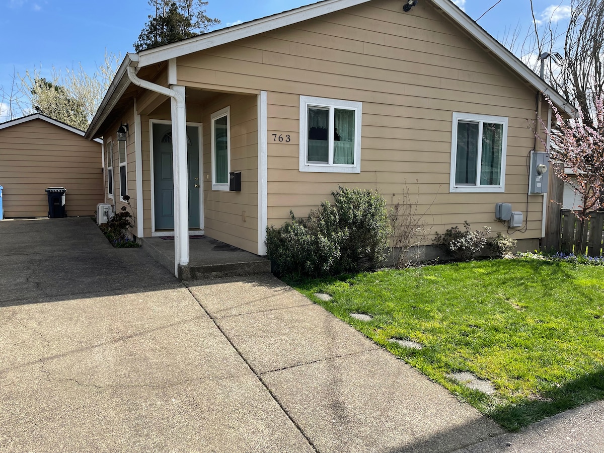 Charming Single-Level House in West Salem's Edgewater District is close to Coffee, Restaurants, Brews, Groceries, and more! Long driveway and single-car garage can comfortably park 3 vehicles (1 in the garage, 2 in tandem on the driveway). Nearby pedestrian paths connect the neighborhood to the Union Street Railroad Bridge, Riverfront Park, Downtown Salem, Minto Brown Island, and Wallace Marine Park. City of Salem License "23-104233-00"