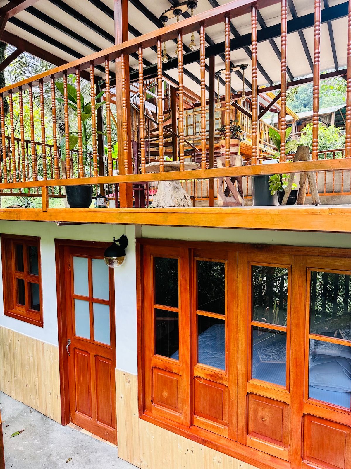 Relax in this cozy bamboo retreat surrounded by greenery, fresh air, and birdsong. Enjoy peaceful walks, biking (we rent), birdwatching, and—if lucky—spotting sloths in their natural habitat. This eco-friendly cabin offers comfort and tranquility to recharge your soul. Just 15 minutes from Salento by car, it’s the ideal getaway to immerse yourself in the magic of Colombia’s coffee region. Perfect for nature lovers seeking serenity. Let the magic of the coffee region rejuvenate your soul!