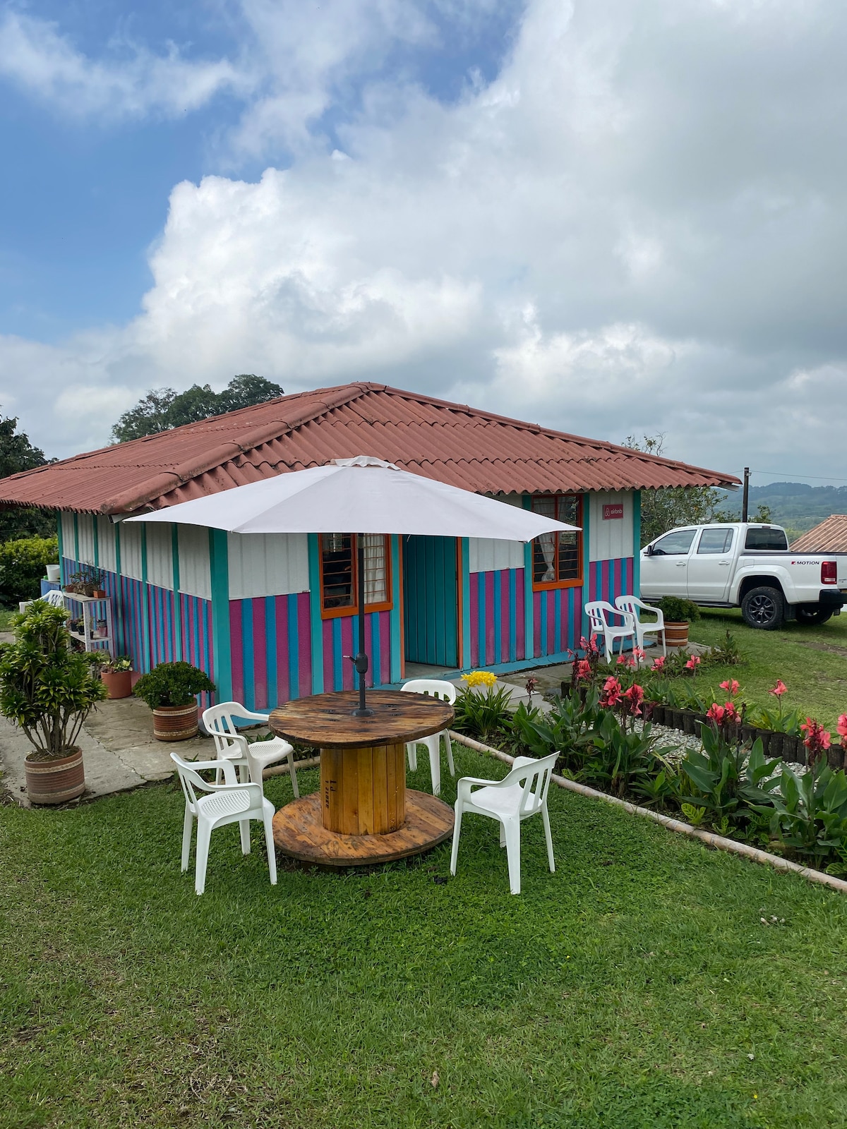 En el corazón del eje cafetero descubre el hermoso paisaje que rodea este lugar, ideal para parejas, entre la naturaleza y la ciudad a tan solo una cuadra del municipio de Circasia, tiene excelentes vías de acceso, podrás fácilmente desplazarte en servicio público o vehículo particular, muy cerca de Salento, Filandia. Podrás disfrutar de avistamiento constante de aves mientras trabajas remoto desde este precioso lugar, con internet de alta velocidad Starlink, parqueadero privado y agua caliente.