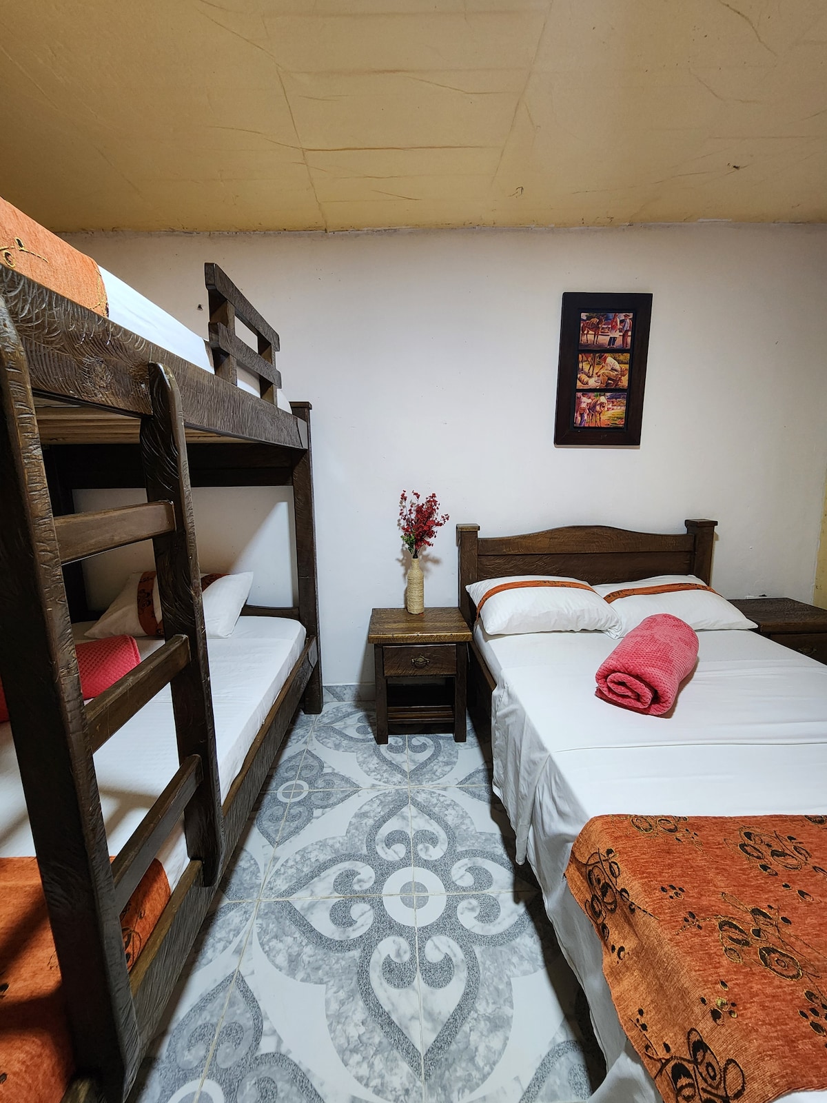 Acogedor apartamento privado familiar con total independencia ubicado a 3 calles de la entrada principal y a 5 calles del parque. Tiene supermercados, tiendas y restaurantes alrededor, todos están cerca del lugar para mayor comodidad. Cuenta con 3 habitaciones, 1 sala de estar, 1 comedor, 1 cocina equipada con todo lo necesario, 2 baños completos con agua caliente, , tv de 50" y Wi-fi. Está en perfecto estado para compartir y descansar en familia. la dirección es Cra. 3 No. 8-01 Salento