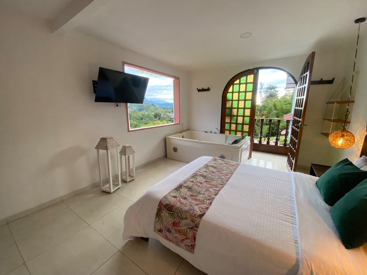 Acogedora aparta-suite de 35 m² con 3 ambientes: habitación con cama doble y baño privado con agua caliente, cocina completamente equipada y sala cómoda. Cuenta con un patio privado con jacuzzi para relajarte, wifi de alta velocidad y televisión. Es el lugar ideal para parejas que buscan descansar, reconectar entre sí y disfrutar de las actividades principales de Salento, Quindío. Un espacio perfecto para relajarte y explorar el encanto del Eje Cafetero.