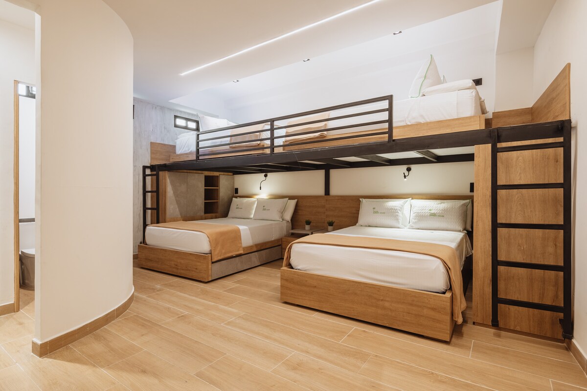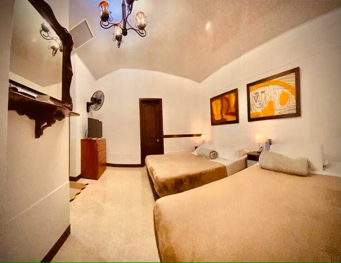 Habitación privada para cuatro personas, se encuentra en un pasillo de varias habitaciones, siendo totalmente privada. Cuenta con su entrada y baño privado, silenciosa y cómoda para descansar. Cuenta con baño privado, cama matrimonial, dos camas sencillas ( nicho ) TV y wifi. Te encontrarás en un punto central para conocer el pueblo.