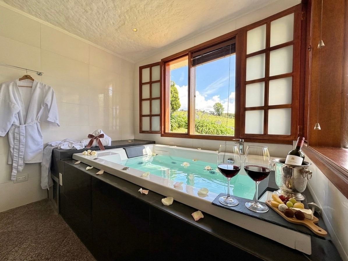 Este elegante refugio combina lujo y romanticismo en el corazón de Salento. La habitación cuenta con una terraza privada con vistas a las calles del pueblo, perfecta para disfrutar de una copa de vino al atardecer. Equipada con una cama doble, baño privado con amenidades L'Occitane, minibar, Alexa, Direct TV y WiFi Starlink. 🌸 Incluye: cóctel de bienvenida, desayuno a la carta, masaje relajante de 30 minutos por persona, uso del jacuzzi en horario privado y parqueadero privado. 🌿