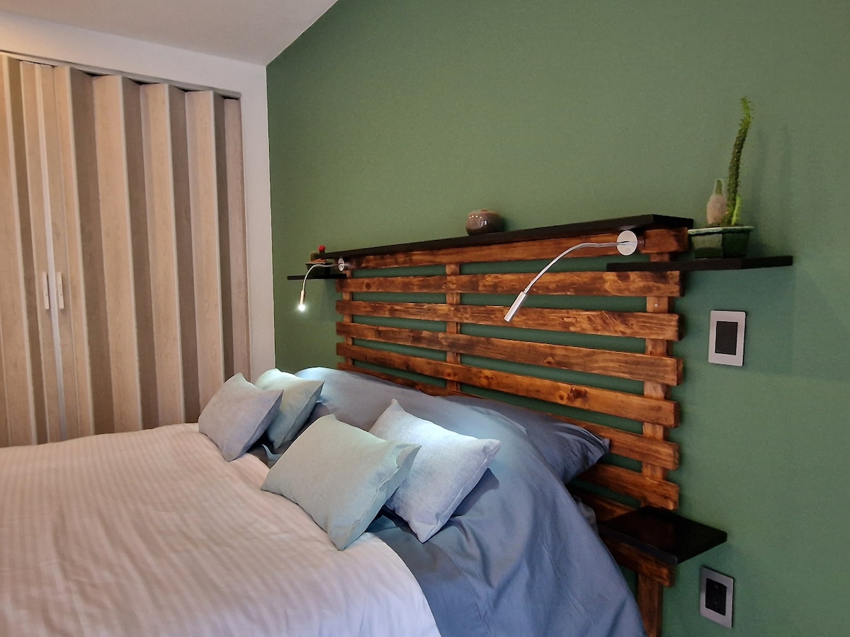 Disfruta de este alojamiento tranquilo y céntrico. Desconéctate en esta hab de lujo, a dos cuadras de la plaza principal alejada del ruido, sumérgete en la naturaleza en medio de jardines tradicionales, el sonido de las aves y avistamientos. Inspírate, sal a caminar y disfruta del mejor restaurante y tienda de moda local del pueblo. Cerca a todo, un oasis natural en el corazón de Sálento. En las rutas de coffe tour, paseos a caballo y bicicletas