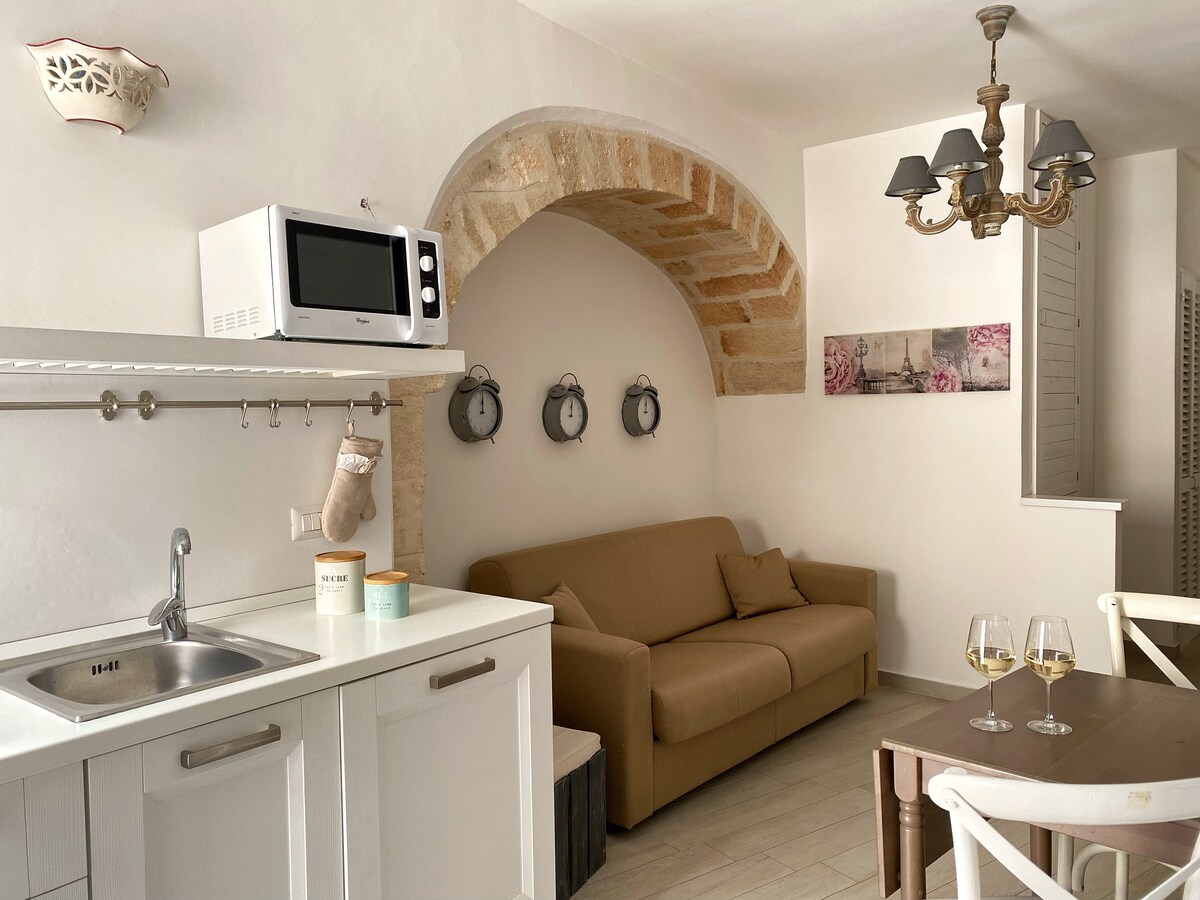 In the living area there is also a modern glass dining table, where you can dine and have lunch, when the weather does not allow you to stay on the terrace. (It never happens that it rains at LEUCA, we're not kidding, it's almost a statistic)
