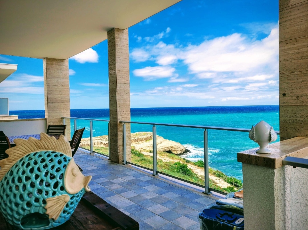 l'appartamento " Sunrise" - Terrazza sul blu Otranto, si trova in una posizione esclusiva, a 10 mt dal mare e la discesa in spiaggia è sotto casa! é dotato di ogni confort, tra i quali Wi-Fi e aria condizionata in ogni camera. Dall'ampia terrazza e dal balcone, potrete ammirare il mare e la città di Otranto in tutta la loro bellezza, e la vostra vacanza, sarà come vivere un sogno, ad occhi aperti! NB: sul mio profilo, disponibile anche l'altro appartamento adiacente