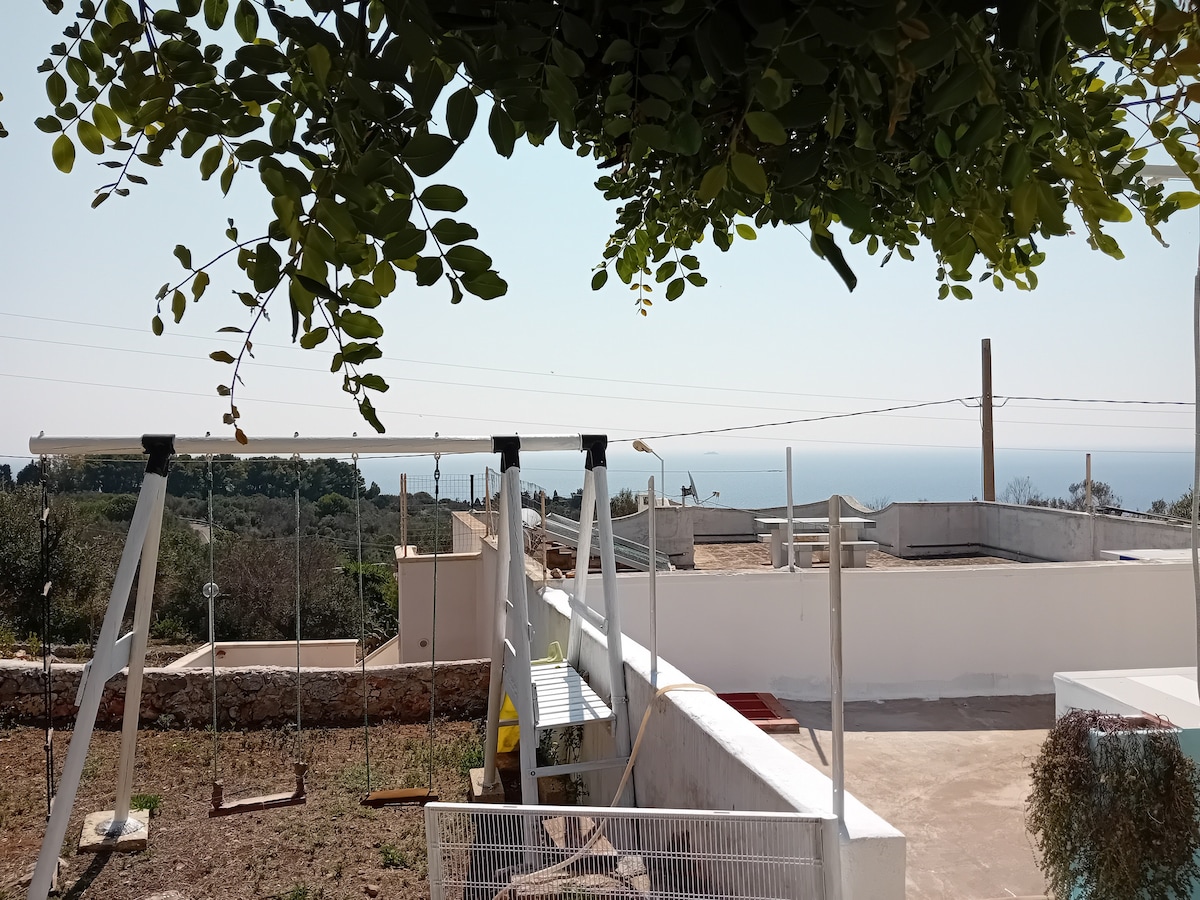 Con vista sul mare mozzafiato, situato su un piano arredato con stile e curato nei minimi particolari. Dista dal mare circa 800 metri in un luogo tranquillo a contatto con la natura incontaminata delle terre del nostro Salento. Composto da ampia sala cucinino, camera matrimoniale, cameretta con 2 lettini, bagno completocon box doccia, un ampio terrazzo attrezzato con barbecue e doccia esterna e giardino vista mare di 700 metri, con posto auto privato