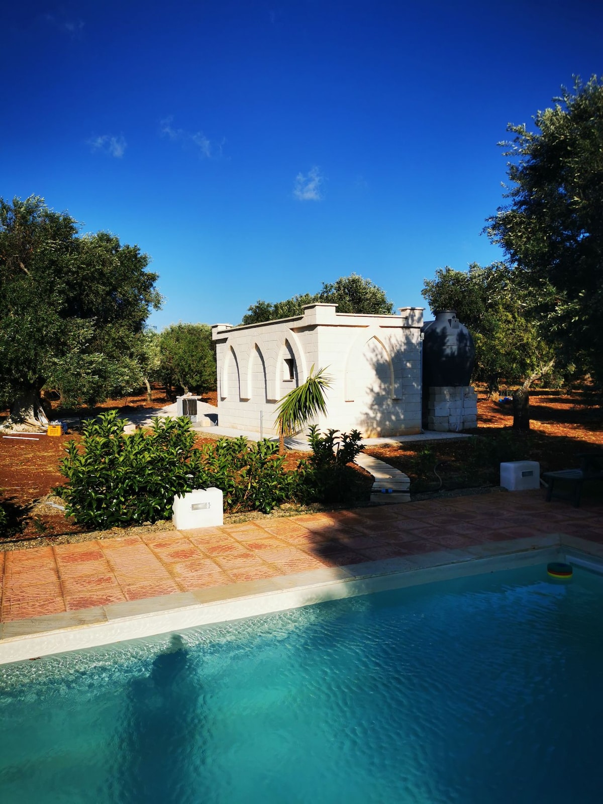 Antico deposito degli attrezzi della masseria costruita nel 1760 e ristrutturato pochi anni fa.con annesso pergolato e cucina esterna Arredato con letto alla francese , angolo cottura e bagno , 20 mq totali . E' ideale per chi vuole passare una vacanza in totale relax e ama vivere la natura.Ha disposizione un cortile esterno e un giardino privato ,lettini per prendere il sole, terrazzo panoramico , doccia esterna con acqua calda , wi-fi e barbecue. Il parcheggio è gratuito .