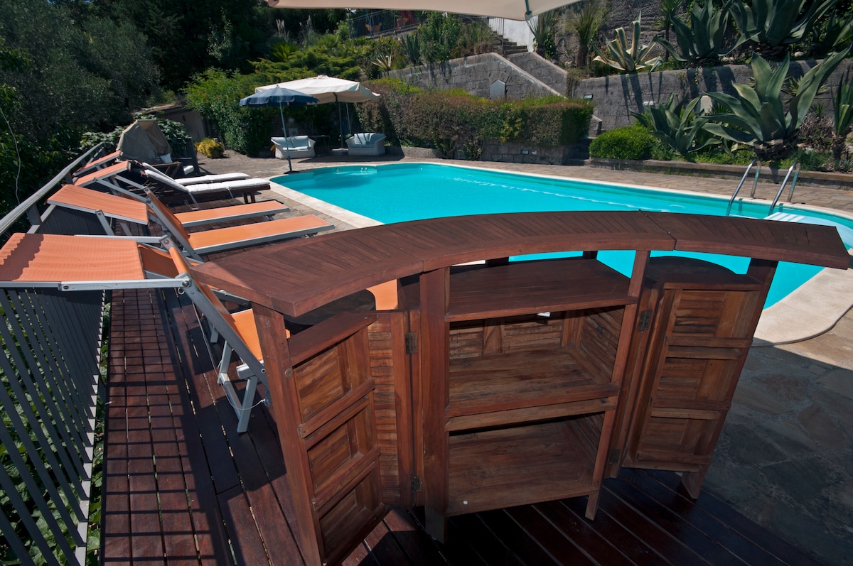 Typical italian villa surrounded by greenery and quiet of a farm. Ideal for those who want to visit Sorrento, Capri and the Amalfi coast but enjoy peace and tranquility. One km far from the city center and from Meta train station. The villa is a single building consisting of two private bedrooms, kitchen and living area with 2 sofa beds, two bathrooms. Private terrace and garden with sofas and sun loungers. Seasonal swimming pool, pool table and wood oven with tavern available for guests.