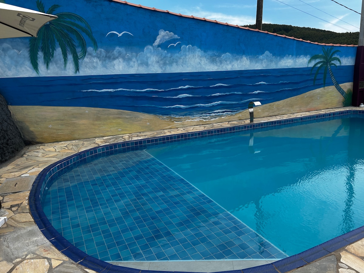 Relaxe na nossa chácara com acomodações para até 12 pessoas em 2 quartos e um mezanino Possui 1 banheiro com chuveiro na casa e outro sem chuveiro na churrasqueira Aqui tem: sala com lareira, internet, 2 smarts TV, churrasqueira, piscina adulta e infantil com prainha, campinho de futebol, quadra de tênis, rede de vôlei para grama ou piscina, cantinho da fogueira, playground para crianças e muito espaço para caminhar E uma vista incrível que vai trazer muita paz e tranquilidade para sua família