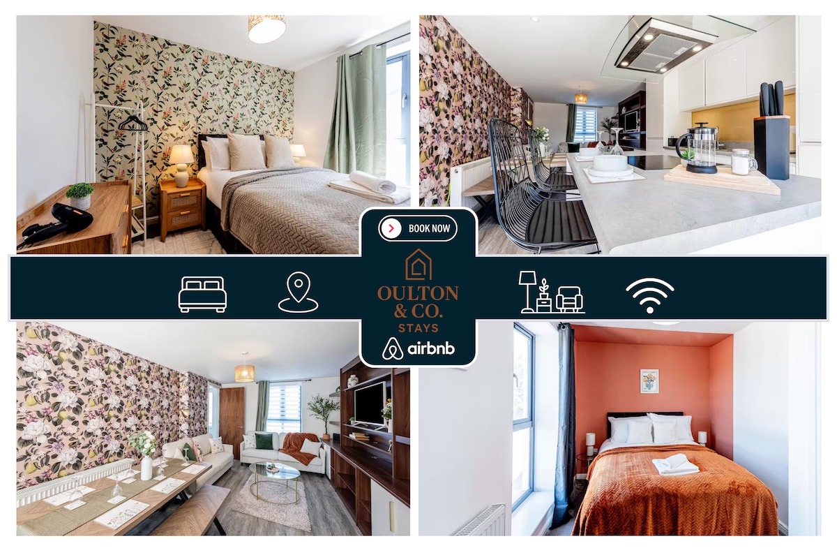 Social Media: 'Manchester Hidden Gem' for direct booking Luxury Private Retreat – Ultimate WOW Factor! Step into indulgence at this stunning gated escape, where elegance meets fun. Unwind in the hot tub, enjoy movie nights in one of two stylish lounges, or challenge friends in the games room. Cook and entertain in the sleek open-plan kitchen, all set in beautifully secluded surroundings. A five-star experience from the moment you arrive. Extremely close to Manchester Airport & City Centre.