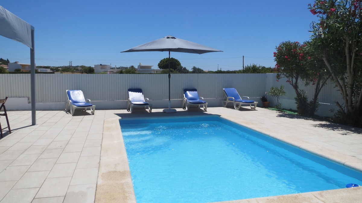 Espaço incrível, villa com piscina com um agradável jardim para desfrutar ao máximo das suas férias com familiares ou amigos. O espaço tem lareira, ar condicionado e uma envolvente relaxante a menos de 10min da praia da Galé ou dos Salgados. Aeroporto de Faro a cerca de 50km. Faremos de tudo para que se sinta em casa!