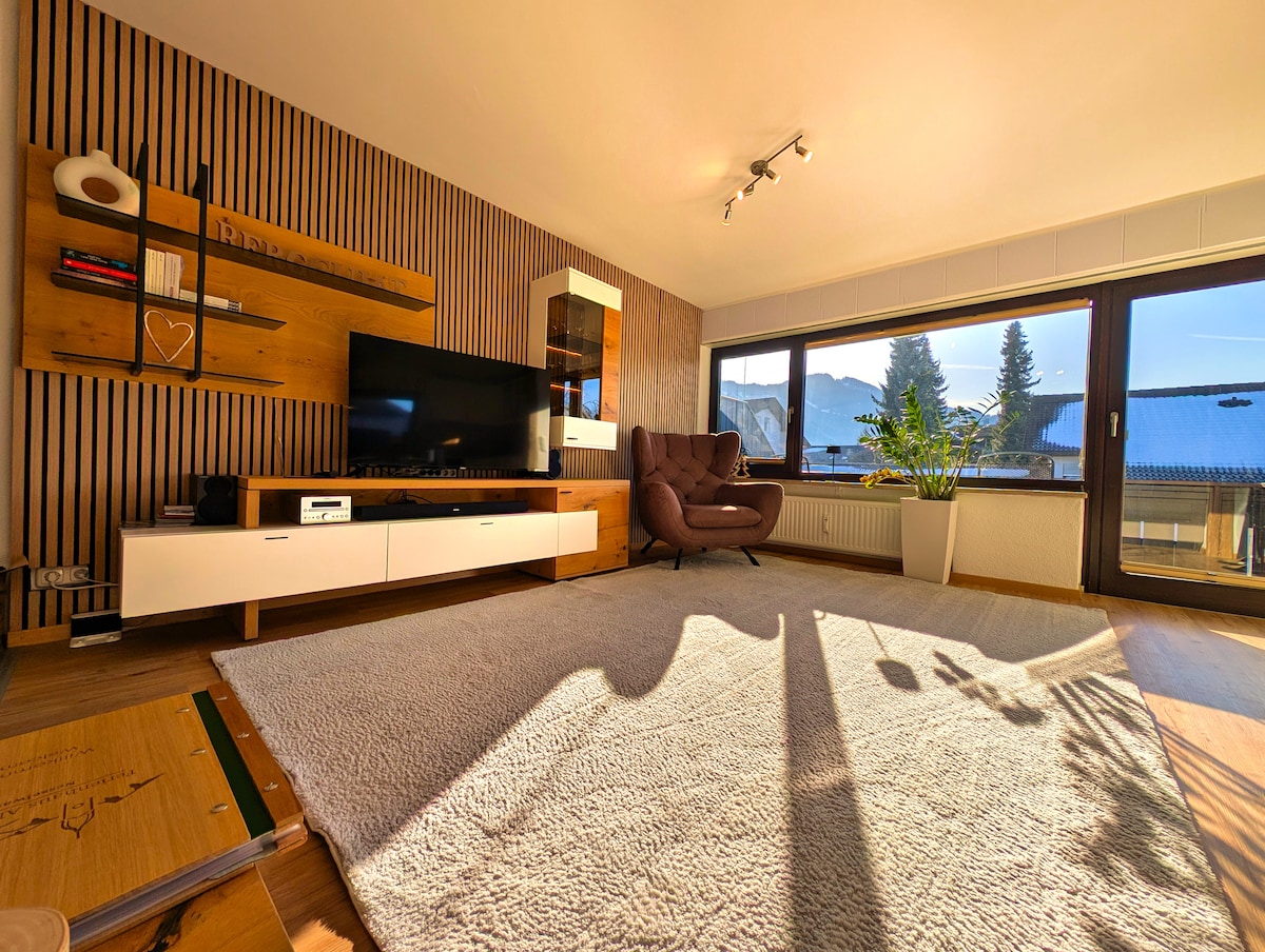 😍Nimm die Familie, Clique mit /Sauna, 🔥toller Garten 25 qm Blockhaus .👍Die 75 qm bis zu 8 Gästen u. 4 Betten🛌 nette♥️ Ferienwohnung mit 2 1/2 Zimmern, einem ca. 17 qm Schlafzimmer u. einem offenem ca. 41 qm 👍großen Schlaf/Wohnraum u. Küche mit hochwertigen😍Doppelbetten +TV /WLAN 😍tolle Unterkunft für Spaß 😀und Unterhaltung vor Ort Skidomizil Langlauf 🎿 Lindau, Schweiz Bodensee und Österreich 🇦🇹 Füssen mit Schloß 🌟gelegen zwischen dem Kurort Bad Grönenbach 👍und Wallfahrtsort Ottobeuren
