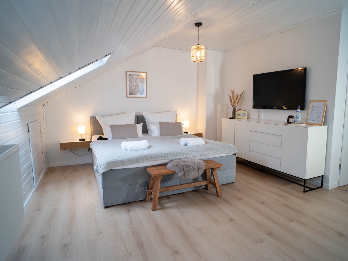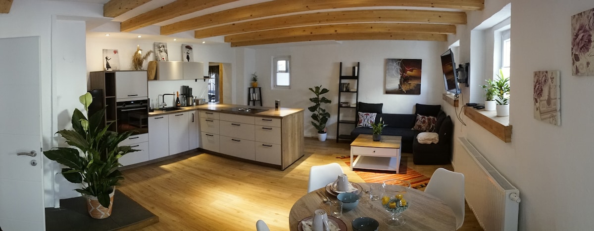 Luxury apartment in a 500-year-old farmhouse Large, exclusive apartment (157 sqm) with historic charm and modern comforts: 250 Mbit high-speed internet, Netflix & Prime Video Sauna, wood-burning stove, indoor and outdoor barbecues, table tennis, darts. 2,000 sq ft garden Please take a look at our Sunshine vacation apartment (in the same house, 121 sq ft, sleeps 6-7) – with top ratings: 5.0/5.0 on Airbnb and 9.8/10 on FeWo-direkt. Unfortunately. Please click on my profile picture, then again.