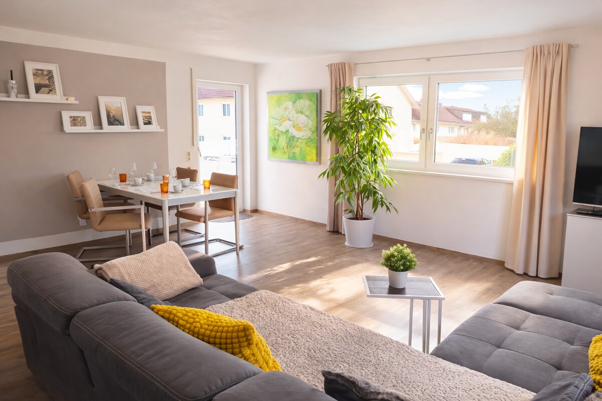 Welcome to ur home away from home! This apartment is a spacious 2 bedroom with high ceilings, and a warm artsy vibe. You're literally in the heart of the city center - only minutes away from sweet cafes/bakeries/restaurants & bars. Train station: 4 min walk Airport: 10 min ride Carpark: right next door for about 5€/day MM-SUMMER Find a nice lake & chill German style MM-WINTER Grab your skiing gear! We’re close to the mountains