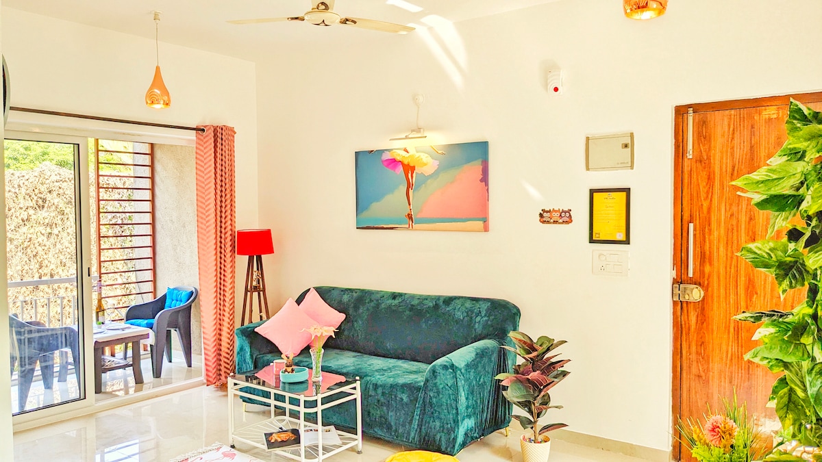 This cozy &luxury Ground floor fully furnished 1BHK is located in Assagao , North Goa in a gated community with 24*7 security guard and daily housekeeping . Flat is just 10 minute drive from Anjuna and vagator beach and next to Soros -the village pub. The apartment has two WiFi high speed internet connection,fully functional kitchen, swimming pool , free parking ,inverter& washing machine. Walking distance from Pablos , Atjuna and just 5-7 min drive to Bawri , jamun , Mustard cafe